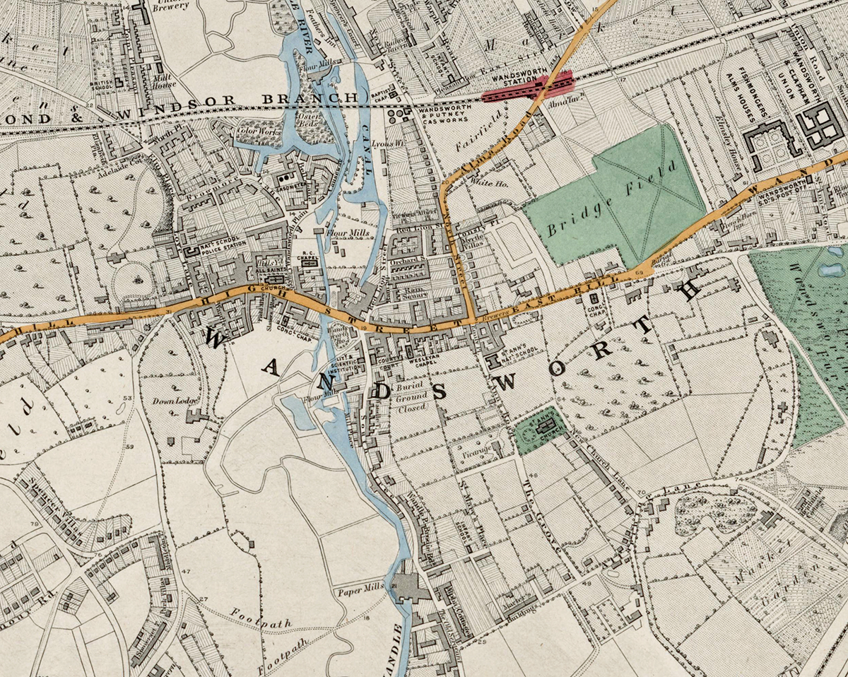 In summary, Sheet 18 captures a transitional landscape where open commons and farmland were rapidly giving way to Victorian suburban streets, illustrating the south-London growth corridor that would soon create the continuous cityscape we know today.